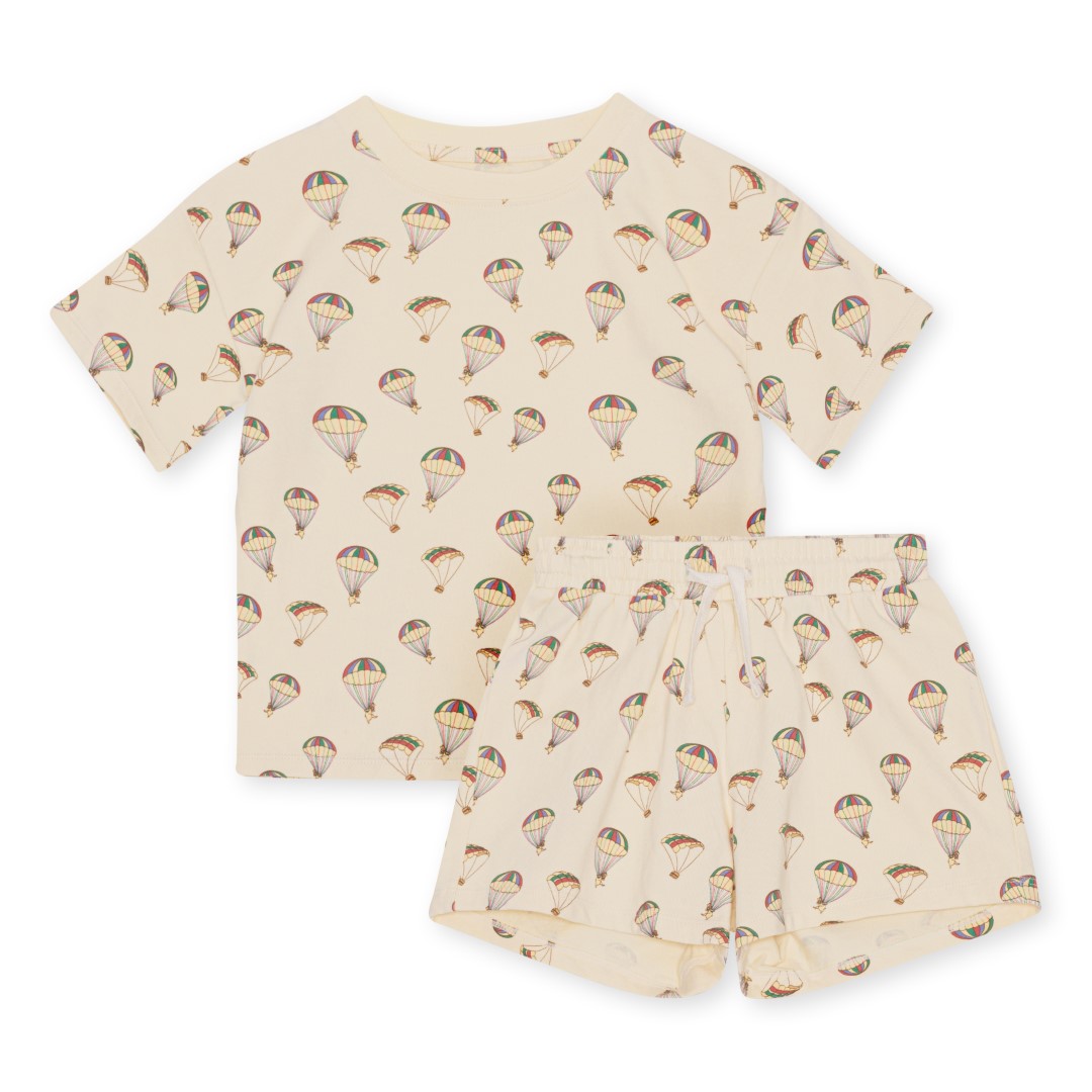 2-delat set, från Konges Slöjds SS23-kollektion. Setet består av en t-shirt och shorts med elastisk dragsko.