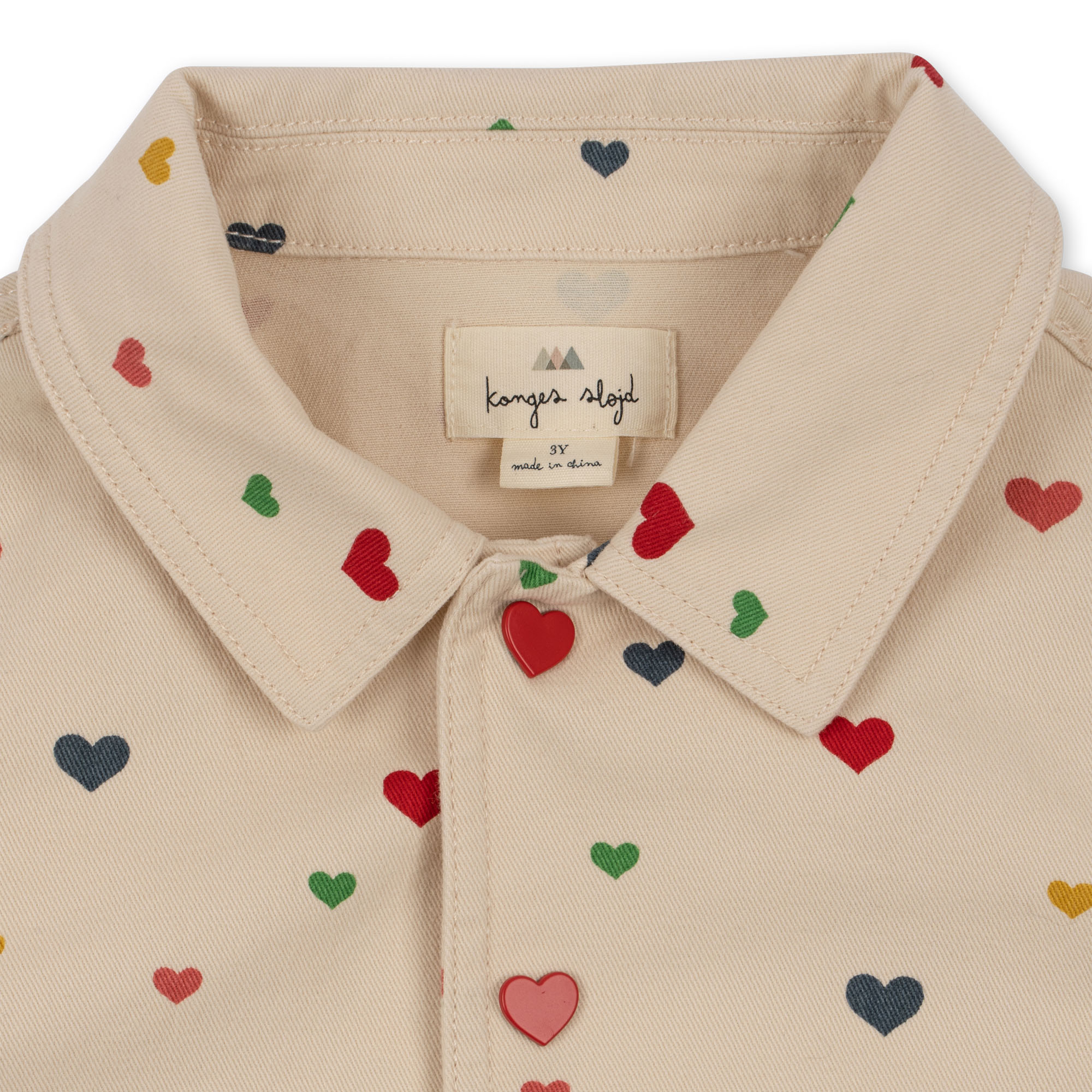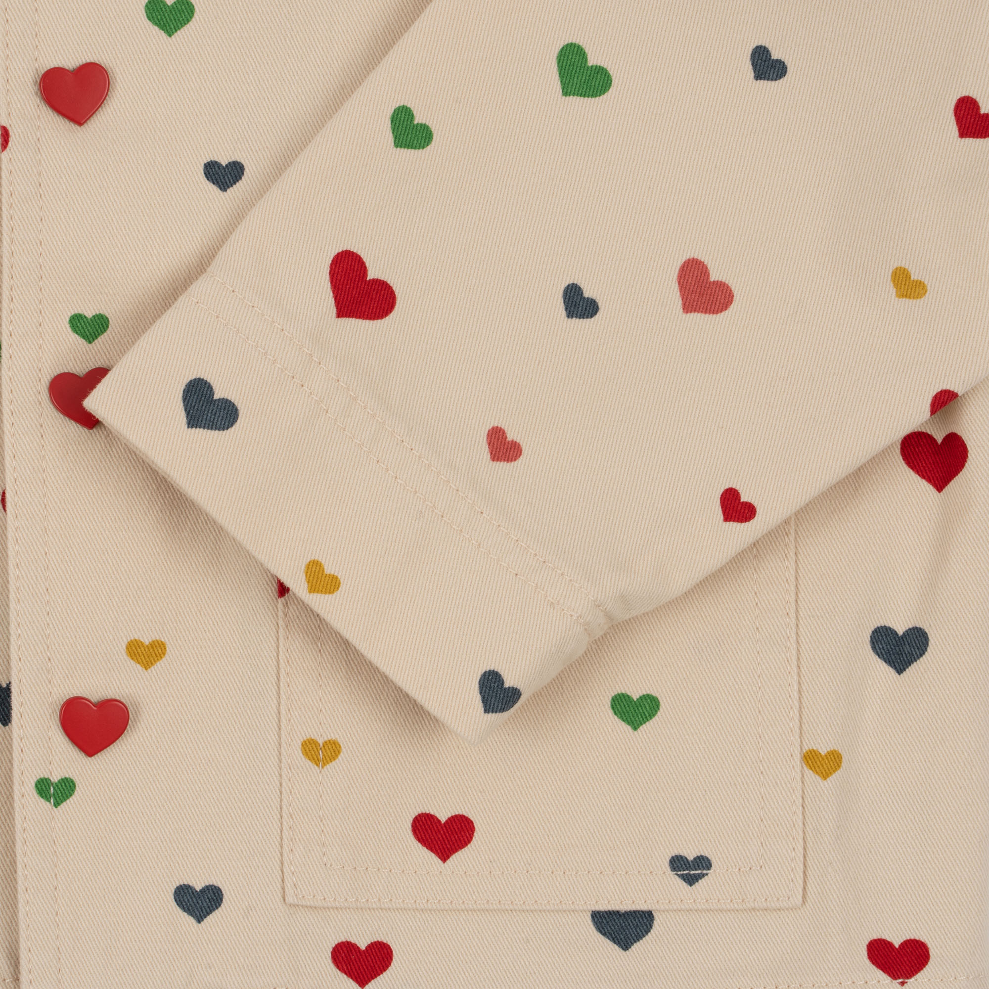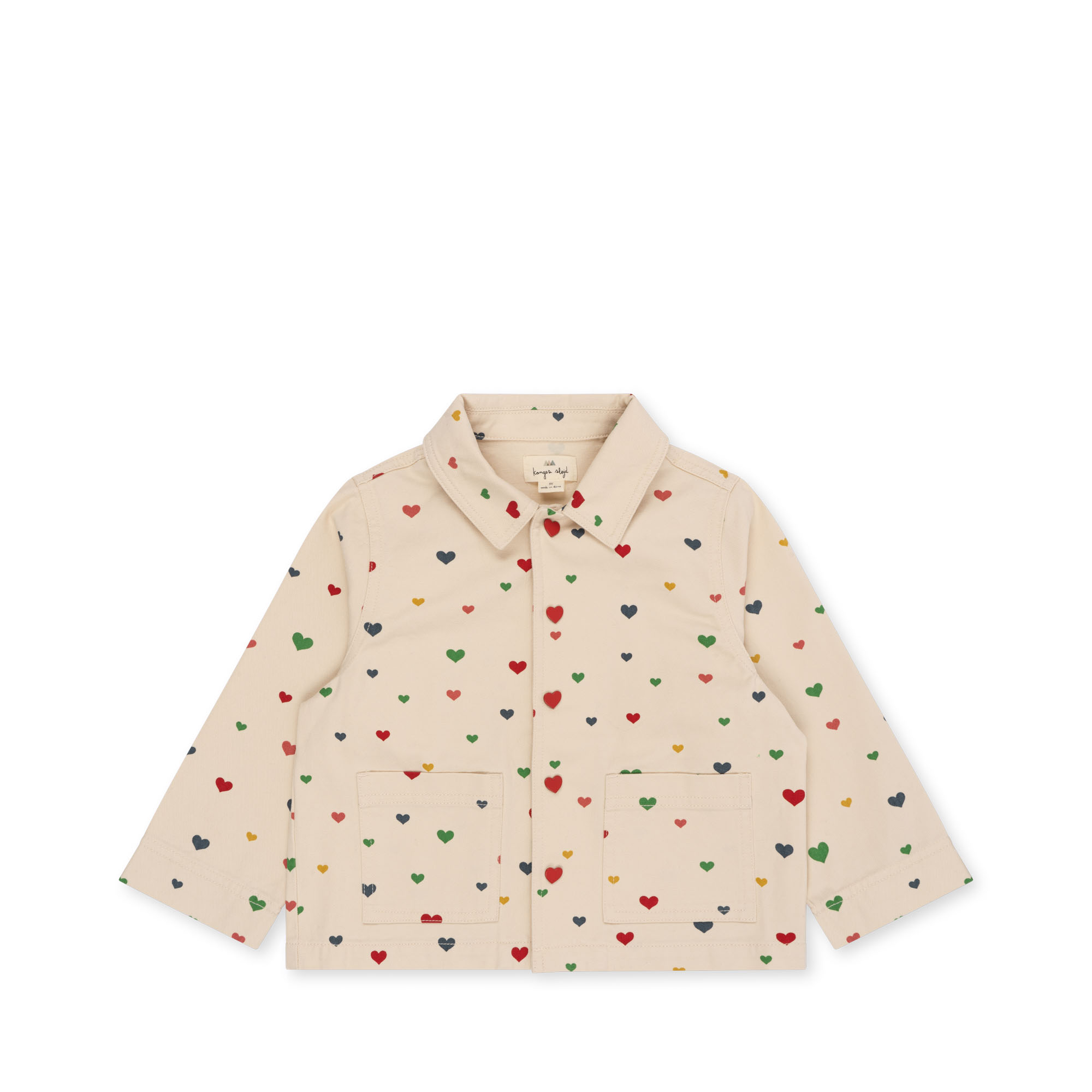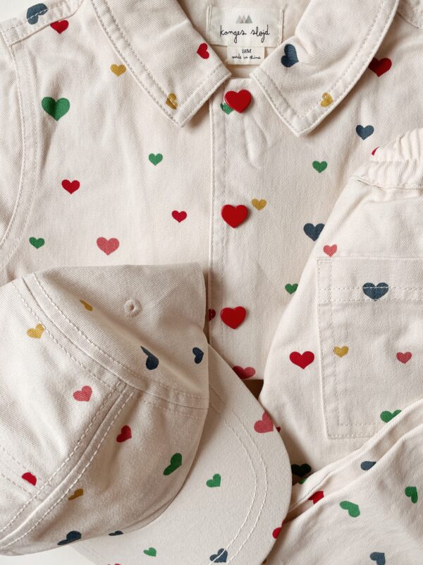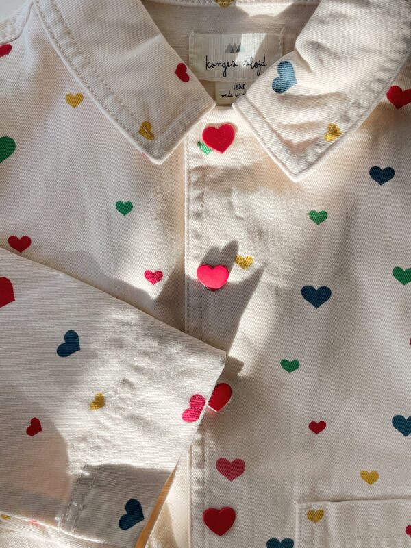 Jacka med hjärtan, från Konges Slöjds SS23-kollektion. Designad med fickor.
